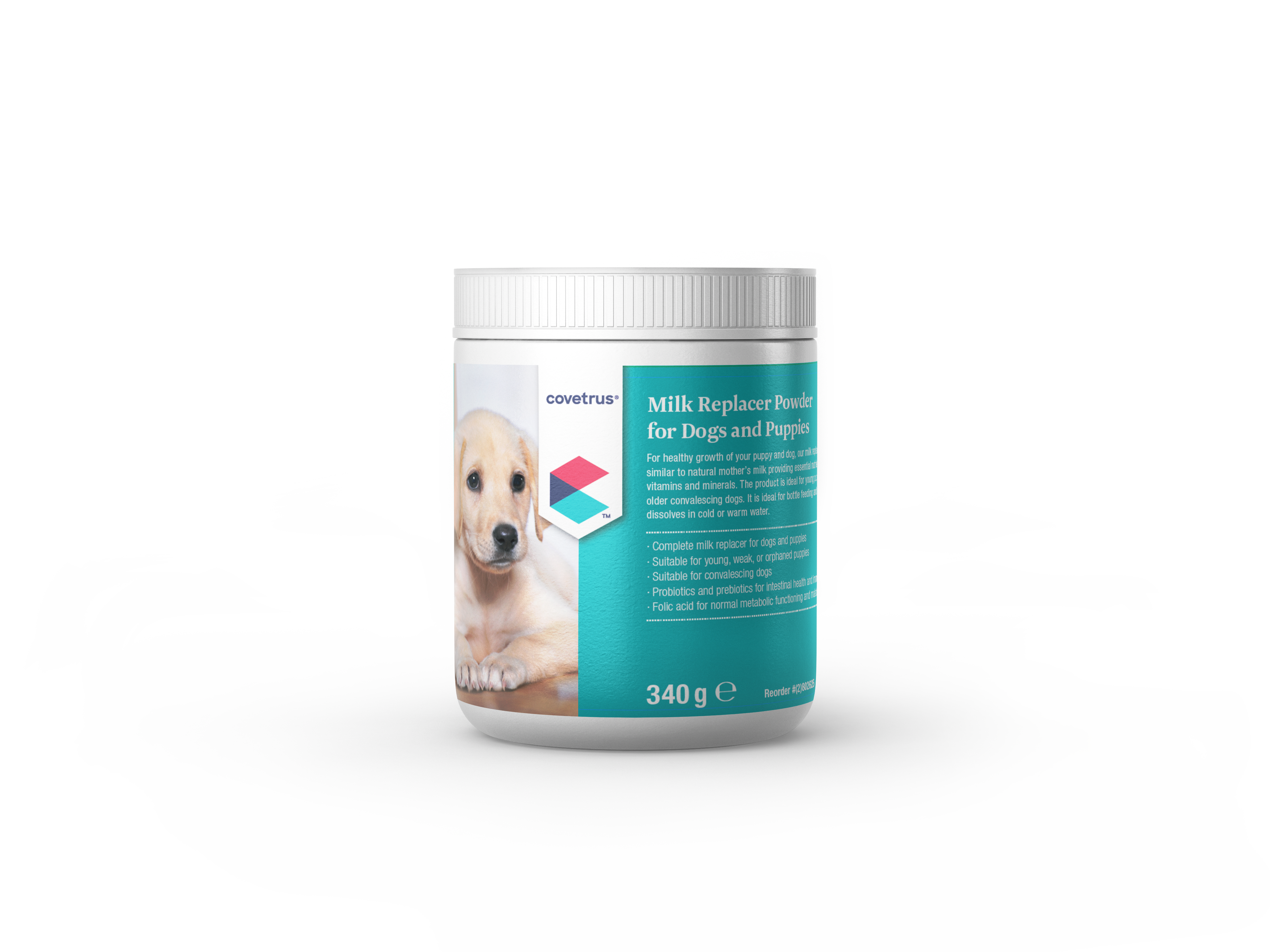 Composition: Whey Protein, Vegetable Oils (Palm and Coconut), Hydrolysed Wheat Gluten, Calcium Carbonate, Magnesium Oxide,MicroFos (a mixture of Fructo and Manno Oligosaccharides) Additives: Preservatives: 1a330 Citric Acid 1000mg, Antioxidant: E321 BHT 150mg;Nutritional Additives: Vitamins, pro-vitamins and chemically well-defi ned substances having similar effect: 3a672a Vitamin A 25,000 IU, 3a671 Vitamin D3 4,000 IU, 3a700 Vitamin E 100 IU, 3a316 Folic Acid 10mg. Compounds of trace elements: 3b103 Iron (Iron Sulphate Monohydrate) 74mg, 3b605 Zinc (Zinc Sulphate Monohydrate) 52mg, 3b503 Manganese (Manganese Sulphate Monohydrate) 36mg, 3b201 Iodine (Potassium Iodide) 0.25mg, 3b801 Selenium (Sodium Selenite) 0.2mgZootechnical Additives: Gut flora stabilisers: Enterococcus faecium DSM 10663/NCIMB 10415 1.8 x1010 cfu, Bacillus velezensis DSM 15544 1.5 x1010 cfu.Analytical Constituents: Crude Protein: 22.8 %; Crude Fat: 21.0 %; Crude Fibre: 0.2 %; Crude Ash: 6.7 %; Moisture: 4.1 %; Calcium: 1.0 %; Sodium: 0.5%; Phosphorus: 0.8%.